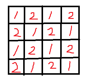 먼저 격자를 홀수 격자와 짝수 격자로 분할한다. (홀수 격자와 짝수 격자라고 말은 했지만, 다음과 같이 분할한다는 말이다.)